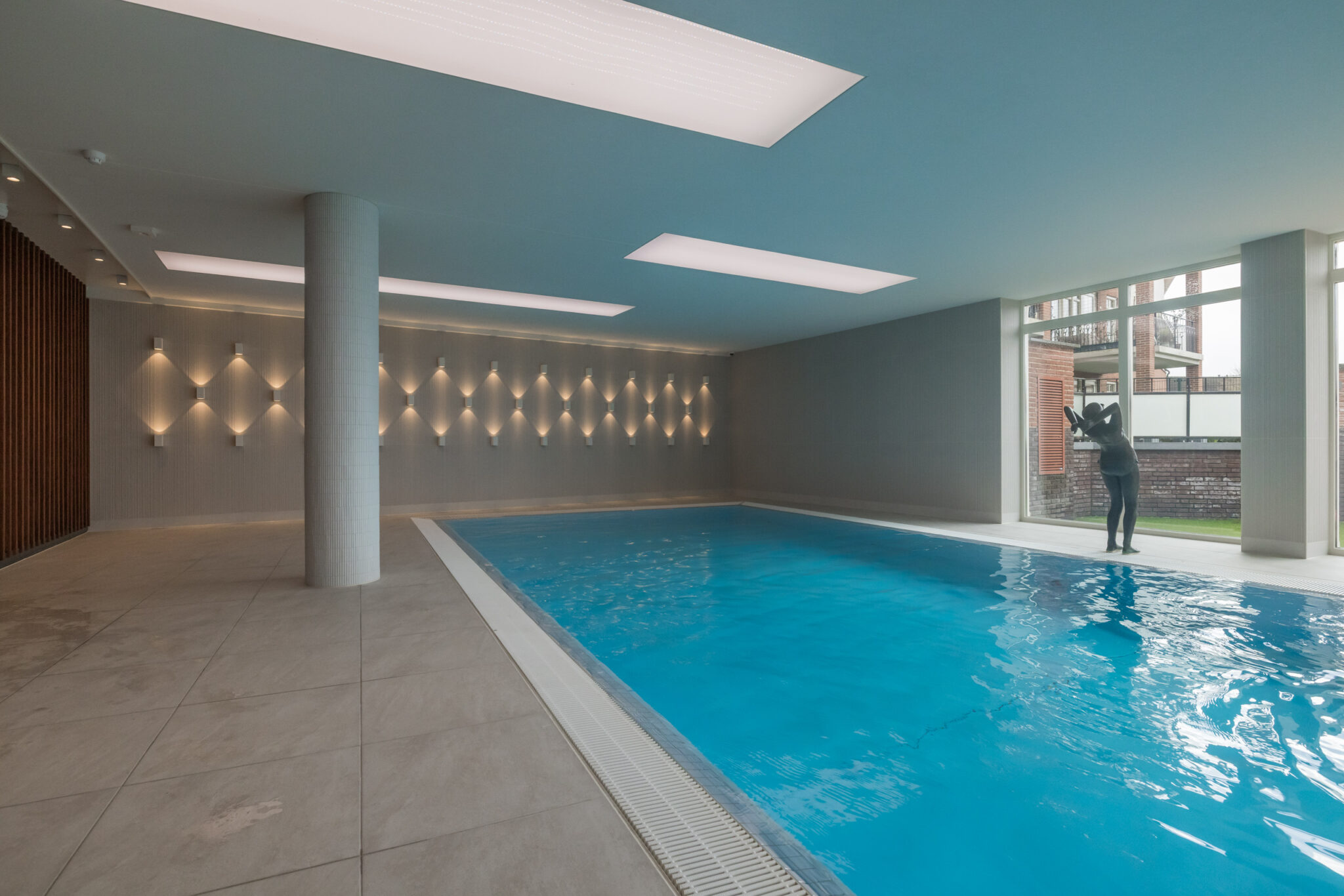 Vloerverwarming en vloerkoeling in het gehele appartement middels de centrale WKO-installatie.