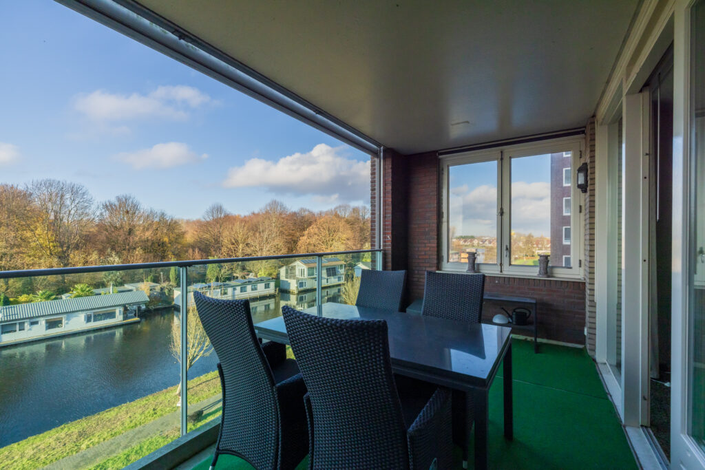 Ruim 4-kamer appartement met royaal balkon en eigen parkeerplek en berging in de ondergelegen parkeerkelder. Vanuit de woonkamer en het aangrenzende balkon op het westen geniet u van een prachtig uitzicht over de Oude Rijn. Het gebouw is voorzien van een centrale entree met liftinstallatie en video intercom.