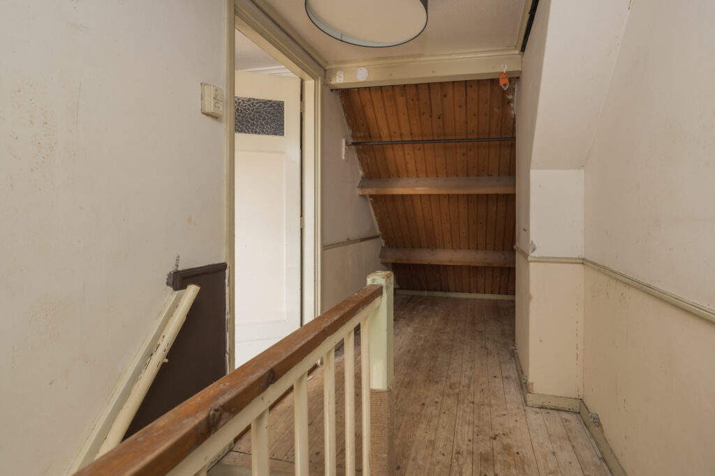 Eerste etage: Vaste trap aanwezig naar de eerste etage met een overloop en een slaapkamer welke is v.v. meerdere inbouwkasten en een dakkapel.
