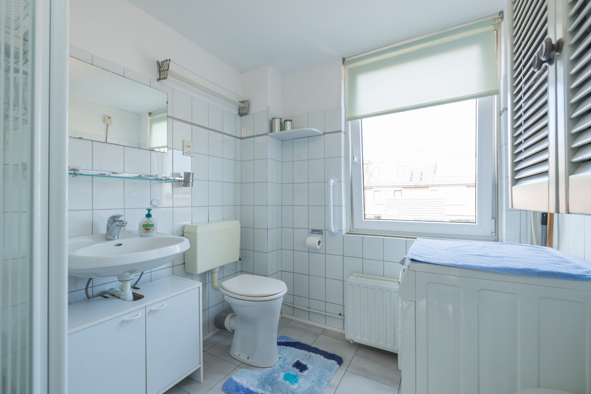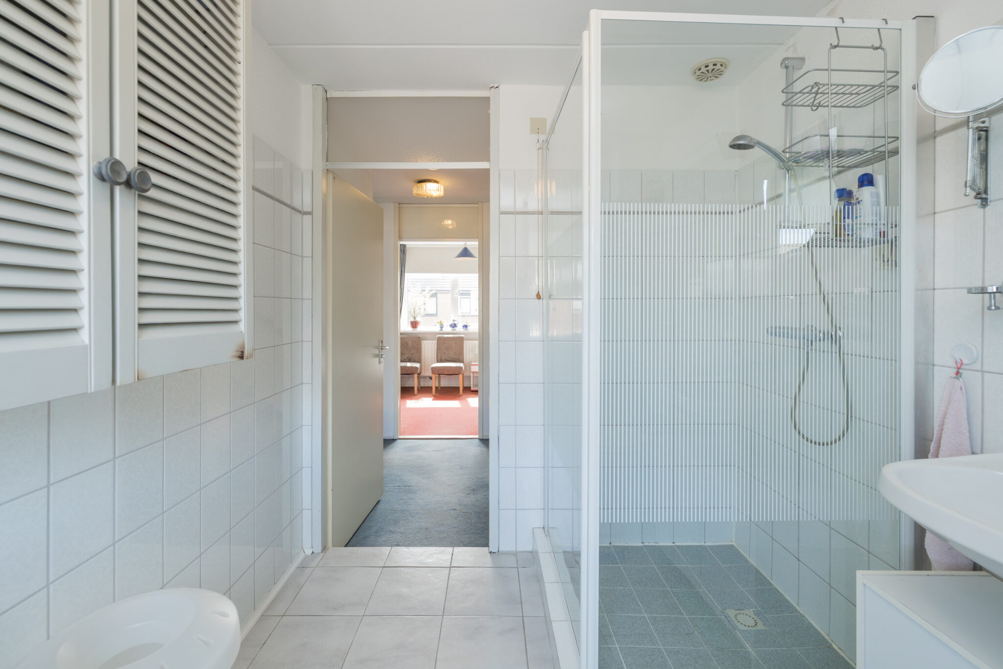 1e Etage: Overloop, grote ouderslaapkamer met toegang naar balkon aan de achterzijde, 2e en 3e grote (kinder)slaapkamer aan de voorzijde, licht betegelde badkamer met douchecabine, 2e toilet, wastafel en aansluiting voor de wasmachine. Alle slaapkamers zijn v.v. HR++ glas.