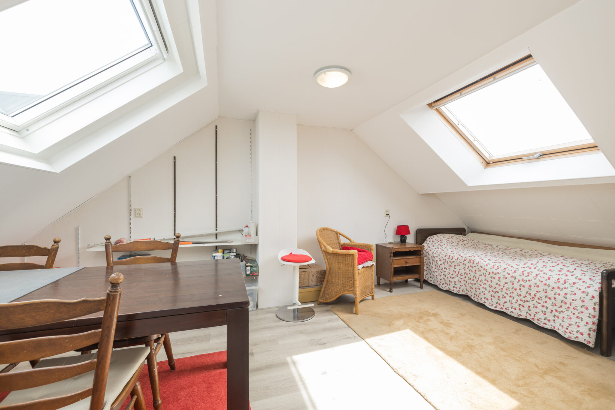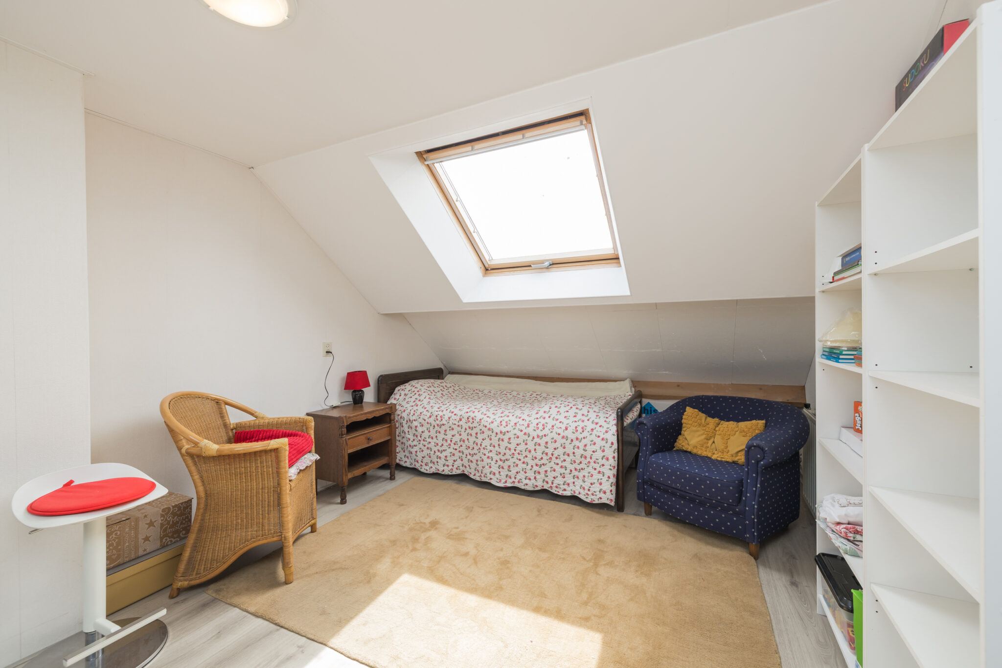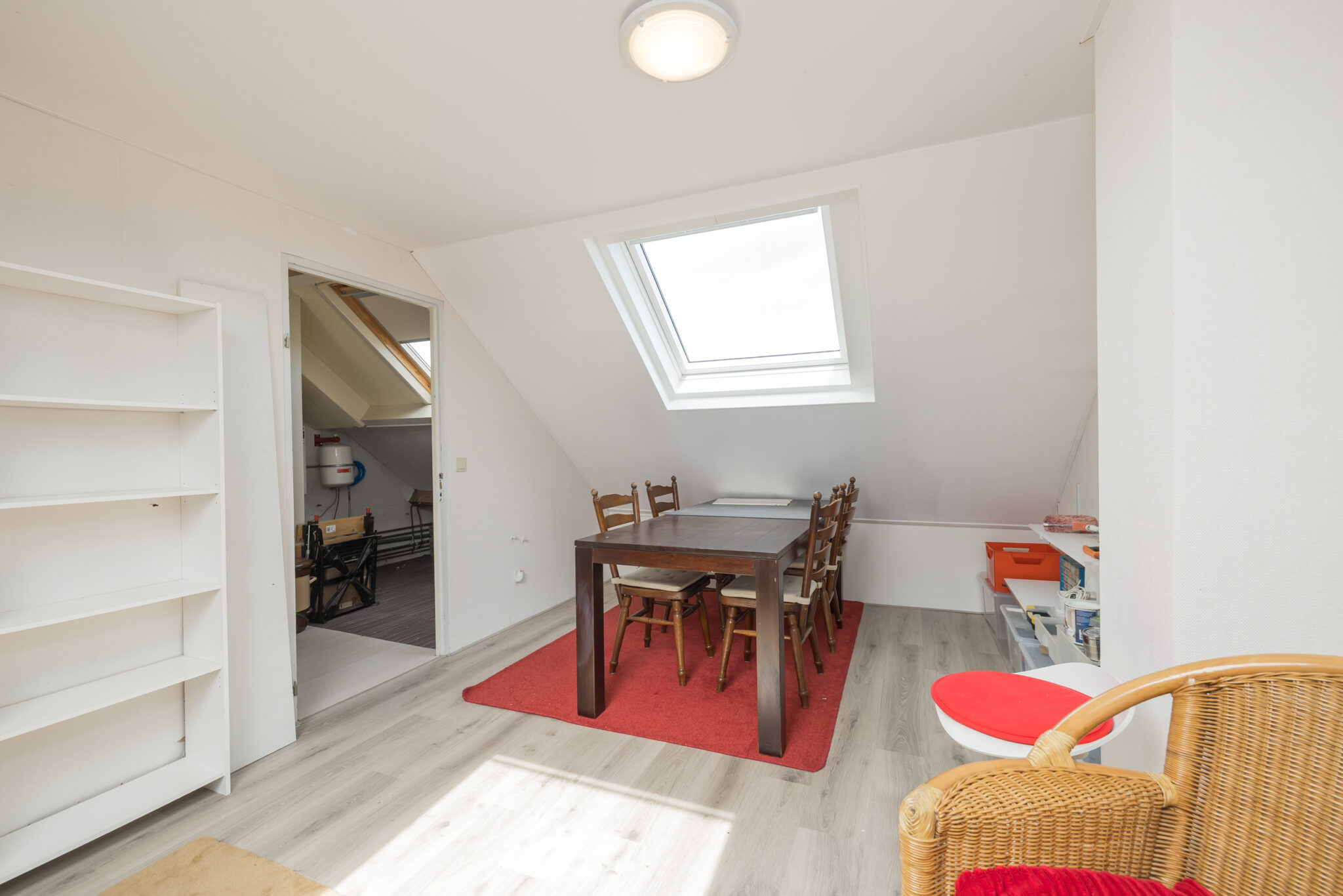 2e Etage: Voorzolder met CV Nefit combiketel (2019) en twee dakvensters, goed formaat 4e (kinder)slaapkamer met laminaatvloer en twee dakvensters.